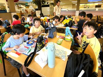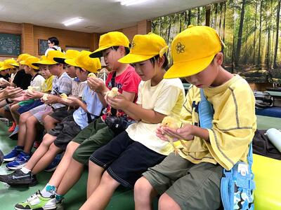 1年生のみなさん、今日は一日とても暑い中、本当によく頑張りましたね! 出発から学校到着まで、100点満点でした!