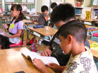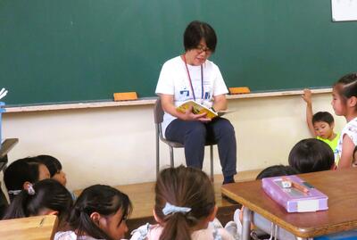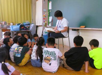 2年生が、国語の学習で、『いなばの白うさぎ』のよみ聞かせを行っておりました。
