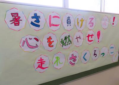 校舎内の掲示板に、今年の運動会スローガンが張り出されました。