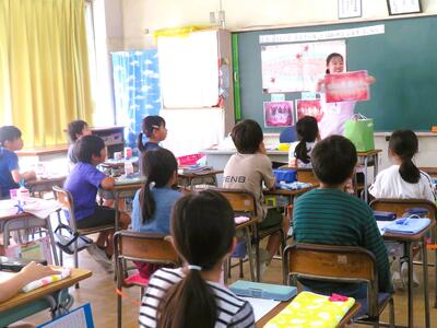 2年生が、国語の学習で、『いなばの白うさぎ』のよみ聞かせを行っておりました。