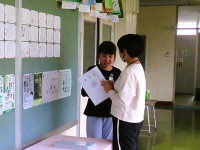 本日の給食終了後、給食委員会のみなさんが、調理室前で奮闘しておりました。