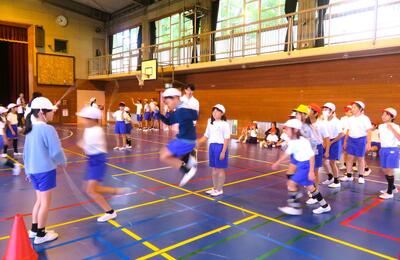 これまで、各学級では、休み時間などを利用して「8の字とび」の練習をたくさん重ねてまいりました。その成果が表れて・・・、当日は1年生も、6年生も、そしてさくら学級のみなさんも、ビックリするくらい上手に、そしてリズミカルに、8の字とびを跳べており、中には自己新記録がでたチームも見られました!