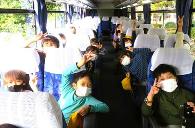 本日、2年生が、生活科体験学習として、茨城県にある「県立博物館」に向けて出発しました。