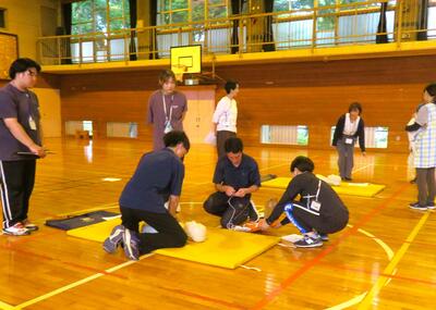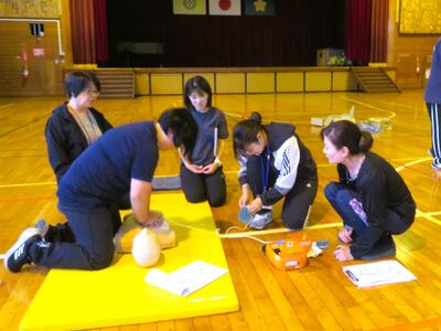 29日(木)放課後、来月から始まる水泳学習に向けて、先生方を対象に『救急救命法講習会』を開催いたしました。