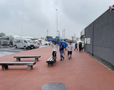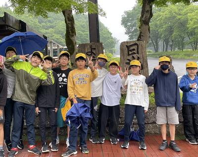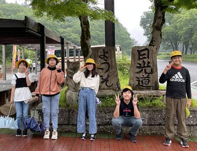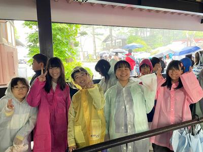 雨は降っていたものの、何とか晴れ間を見つけて…、みんなで記念の一枚、ハイチーズ!