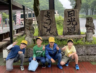 天候は…雨。しかも強め…。眺めはいまひとつではあるものの、いろは坂で右へ左へと揺られながら、子供たちの恐怖と興奮はクライマックス!