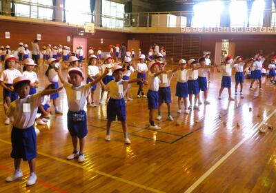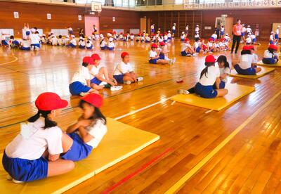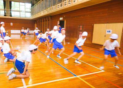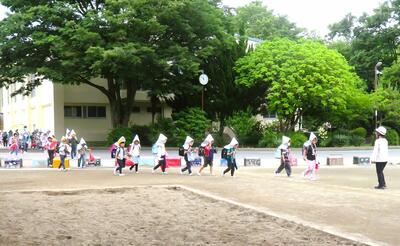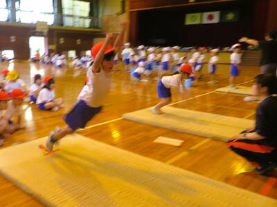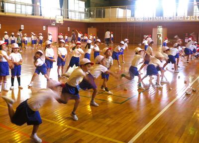 新体力テスト(小学校)は、男女とも、握力、50m走、長座体前屈、上体おこし、立ち幅跳び、反復横跳び、20mシャトルラン、ソフトボール投げ、の計8種目。それぞれに得意・不得意はあるとは思いますが、どの種目も、昨年度の自分の記録を超えることを目標に、全力で臨みました!