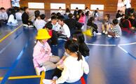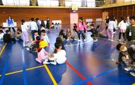 近隣の保育所のみなさんをお迎えして開催し『ようこそ、さくらちょうしょうがっこうへ! の会』ですが、後半は、体育館にて、一緒に仲良くゲームを行いました!