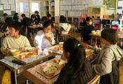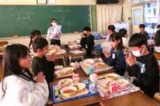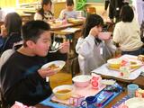 今日は、2学期最後の給食の日。ピラフにスープ、フライドチキンにチョコレートケーキと、明後日のクリスマスイブに向けた「クリスマスメニュー」でした!