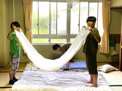 自分たちが使った部屋の整理整頓、布団を片付けます。