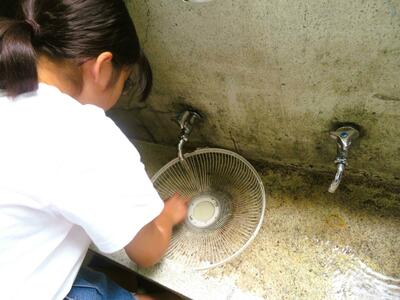 4月から毎日使用した教室をはじめ、廊下や階段、昇降口、特別教室などなど・・・・。約4ヶ月使って汚れた個所を重点的に、みんなで役割分担して、一生懸命にそうじを行いました。