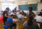 さて、今日は、全校でそろって「算数タイム」。復習がてらに用意されたプリントを、どの人もグングン解いておりました!
