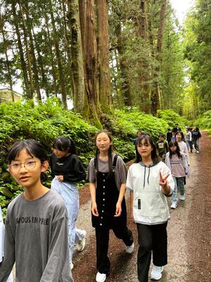修学旅行の締めくくりとして、日光の有名なスポットの一つである「日光杉並木公園」を、みんなで散策しました。