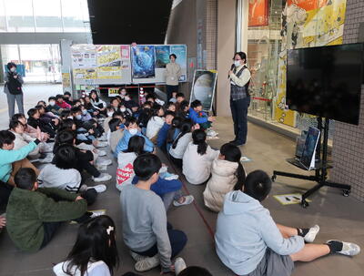 プラネタリウム見学を終えた4年生のみなさんは、次に、科学館内の「科学展示室」へ移動! 「サイエンスショー」や科学のフシギを体験できるものづくり「わくわくワーク」など、たくさんの参加体験型プログラムを行いました!