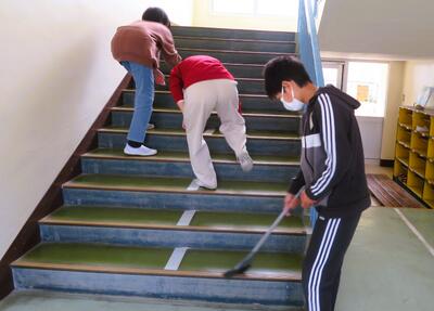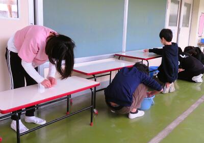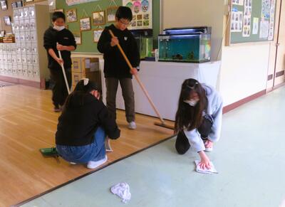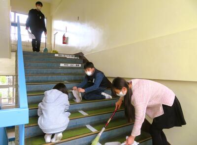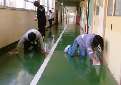 6年間お世話になった学校に感謝し、校び舎をきれいにしようと、卒業を目前に控えた6年生のみなさんが、校舎内を隅々まできれいに掃除しておりました。