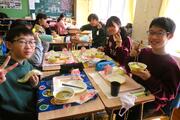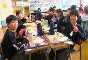 それぞれのクラスへ行ってみると・・・、「美味しい給食でした!」「最後にいっぱいおかわりします!」「今日は、絶対ジャンケンに勝ちます!」などなど、みんなで楽しく、そして美味しく給食を食べている様子を伺うことができました!