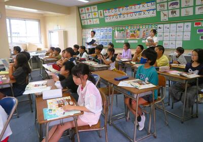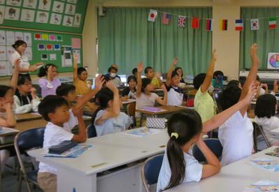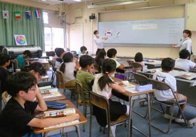 4年生が、外国語活動の時間に、英語専科の先生やALTの先生とともに、『 Do you have a pen ? 』の単元に取り組んでおりました。
