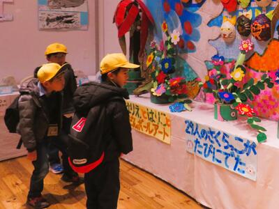 会場のアトリアに入ると・・・・、各学校のお友だちが作ったステキな作品がたくさん展示されており、驚きとともに「すご~い!」や「これ、動いて光ってる~!」など、興味を持って鑑賞することができました。