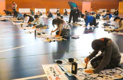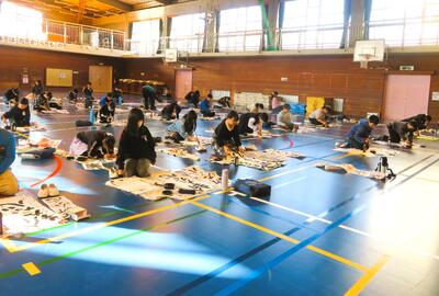 「新たな心」 投稿: 桜町小 (01/13) カテゴリー: 今日の出来事 5年生競書会! 5年生が「競書会」に臨みました。 しんと静まり返った体育館にて、全員が集中して「最高の一枚」を仕上げるために頑張っておりました! 5年生は皆、一筆書いては見直し、一文字書いては見直すなど、「とめ」「はね」「はらい」を意識しながら筆を運んでおり、出来上がった作品も「さすがは高学年」といえるほど『最高の一枚』に仕上がりました! がんばりましたね、5年生! Tweet -