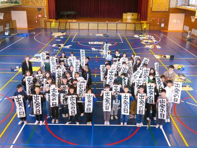 今年の題字は『出発の日』。2ヶ月後に小学校卒業と中学進学を控えた6年生にとっては、まさに字のごとく、『出発の日』に向けた強い決意が感じられる作品となりました!