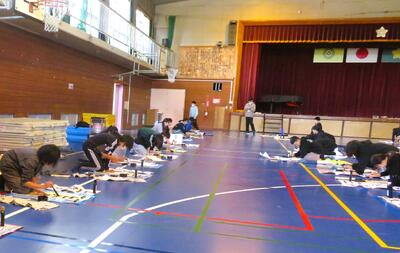 6年生が、小学校生活最後の競書会に臨みました。