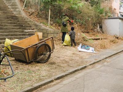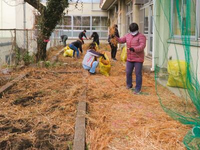 今日は特に寒い一日でしたが・・・・、PTAの皆様には、校地内の雑草が多く生えている箇所を重点的にきれいにしていただきました。