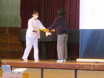 後半は、いつもおいしい給食を作っていただいている調理員さんをお招きして、感謝のきもちをお伝えさせていただきました。調理員さんからも「がんばって作るので、いっぱい食べてくださいね!」とのお言葉を頂戴しました。