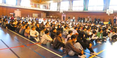 今日の朝は児童集会。給食委員会の皆さんによる発表がありました。