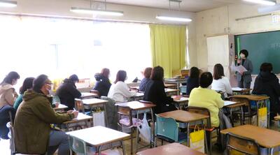 続いて、学級懇談会では、1年間の子どもたちの成長の様子や、次年度に向けた課題等について、お家の方々と共有させていただきました。