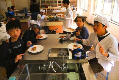 実施後、家庭科担当の先生によると・・・・「楽しかったです!」「美味しくできました!」とのこと。 卒業を控えた6年生にとって、残り僅かとなった授業の一つ一つが良き思い出となっているようです。