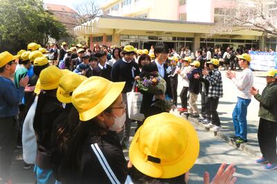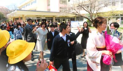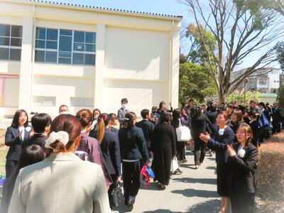 職員や在校生など、多くの方々で花道を創り、卒業生の門出を見送りました。