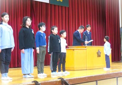 最後に、校外で行われた各種大会等にて、賞に入った児童に向けた表彰伝達があり、該当する児童らが表彰を受けました! さくらっ子はみんな、この一年、本当によくがんばりました!