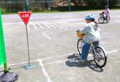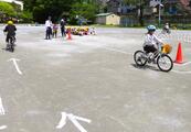 こちらは『自転車』の交通安全教室です。 乗車前の事前点検『ブタベルサハラ』や、右左折、徐行、一時停止などなど、自転車を操作(運転)しながら行う難しさを体感しながら、みんな一生懸命に取り組んでおりました!