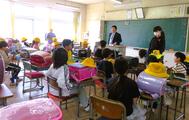 入学式終了後は、"初めての"学級活動。 担任の先生のお話をしっかり聞き、「ハイ!」と、とてもステキな返事をしていました。